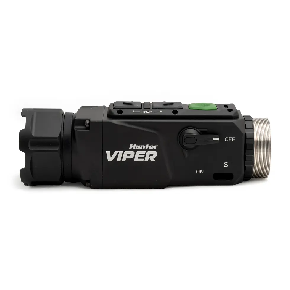 VIPER värmebildtillbehör har utvecklats speciellt för installation framför kikarsikten eller observationsanordningar, såväl som som en fristående handhållen enhet, och ger dig klar sikt under olika miljöförhållanden. Även i dimma, regn, snö, rök eller totalt mörker är VIPER din pålitliga följeslagare. Till ett rimligt pris erbjuder den en kompakt design och extremt låg vikt på cirka 260 gram.VIPER:s sofistikerade design eliminerar behovet av att ta bort slitagesikten eftersom VIPER monteras direkt i linje med ett standardkikarsikte för dagtid. Och det bästa: det finns ingen anledning att ställa in den på noll och islagspunkten förblir densamma, oavsett hur ofta VIPER monteras.Till skillnad från sina konkurrenter är alla Nitehog termiska bilder kvävefyllda. Kvävefyllningen förhindrar imma på insidan vid snabba temperaturväxlingar och är absolut vatten- och dammtät på grund av det lätta övertrycket i huset.VIPER är utrustad med vår nya A-CORE®-modul med en beprövad upplösning på 320 x 240 pixlar och en extremt liten tonhöjd på 12 μm . Huset är tillverkat av en slitstark och extremt motståndskraftig magnesiumlegering och är belagd med en matt antireflexbeläggning och IP 66 vattenskyddad.